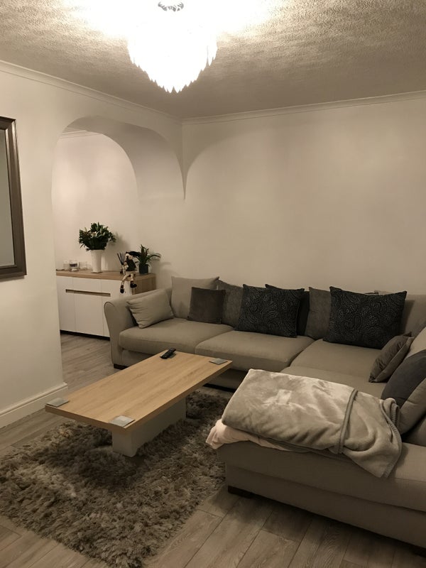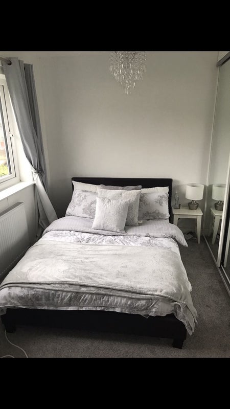 Kitchen comes equipped with a washing machine, dryer and dishwasher and a double cooker. Plenty of room it’s a great size! There is also a shed in the back garden if you have a bike. I do not have a drive as the property is on a green, however there is parking available on the road outside of the house. Wifi included with all other bills. Tv in living room and in the bedrooms. A double mirrored fitted wardrobe, double bed and mattress with bedding if required and two 3 drawer units.