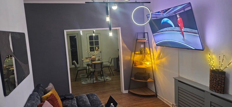 It is a good sized house with a hallway - Open plan living and dining room. Brand new furniture, TV's, Fridge Freezer & 11kg Washing Machine. There is a huge bathroom (shared).