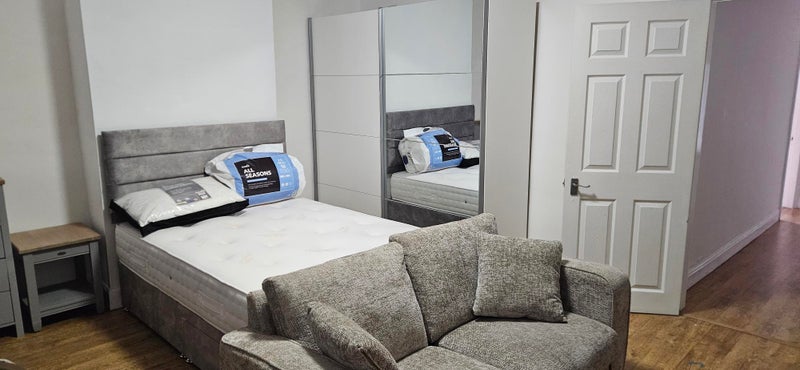 The room available is a large room with a brand new double bed, brand new double wardrobe, new sofa from Dunelm and TV provided.