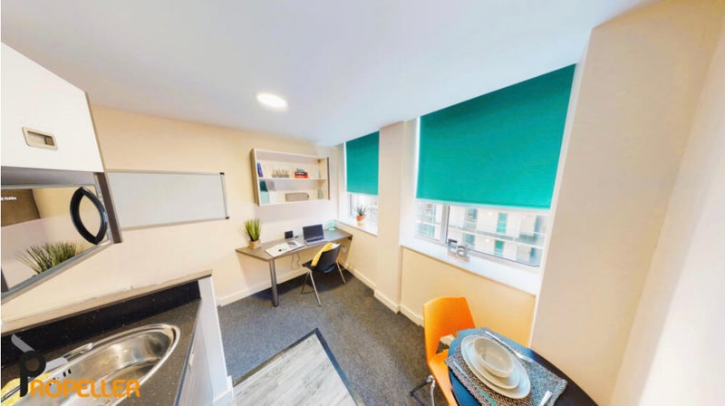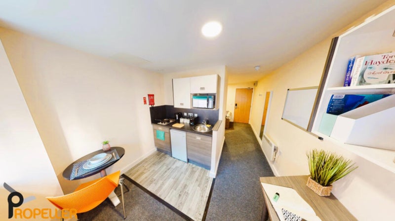 Our studio rooms are recently refurbished self contained bedrooms, with an ensuite bathroom and private kitchenette. The rooms come fully furnished with a small double bed, complete with under-bed storage, wardrobe, full length mirror and individual study area. In the kitchenette, you will find a fridge-freezer, 2-ring hob, combi-oven, plenty of cupboard space and your own dining table. In room:- Ensuite shower and toilet - Small double bed - Wardrobe - Desk & chair - Whiteboard Full length mirror - Fridge freezer - Combi-oven- 2 ring hob - Dining table- WiFi - Bills included - Key card access -Communal features: - Reception available 24/7 - Gym - Laundry - Common room with TV and pool table - Lift access to all floors - Cleaner<- On-site maintenance - Post box - Wifi / Key card access. As newly refurbished student accommodation, The Cube is the perfect home-away-from-home for your educational adventure in Bolton and Greater Manchester. Located in the heart of Bolton, it-s perfectly placed for all the city-s campuses and attractions, with shops and entertainment close by, or an easy hop into Manchester from the nearby railway station. Comfortable, modern rooms, all with private bathrooms, make the ideal refuge for study and rest, while our on-site gym and social spaces are a great way to work out and meet new lifelong friends. A 24-hour concierge can help with little problems like a lost key, and make sure the whole building stays safe and secure. University of Bolton: 0.6 miles away University of Salford: 11.6 miles away University of Manchester: 13.4 miles away