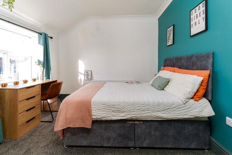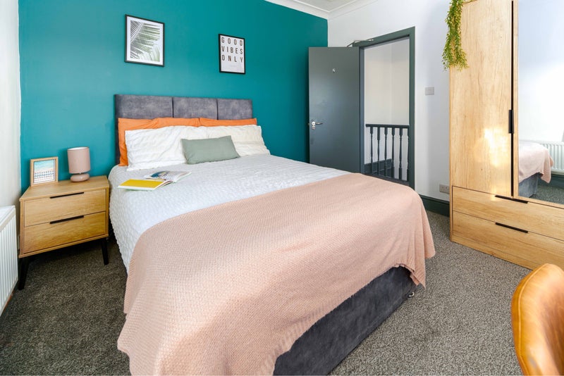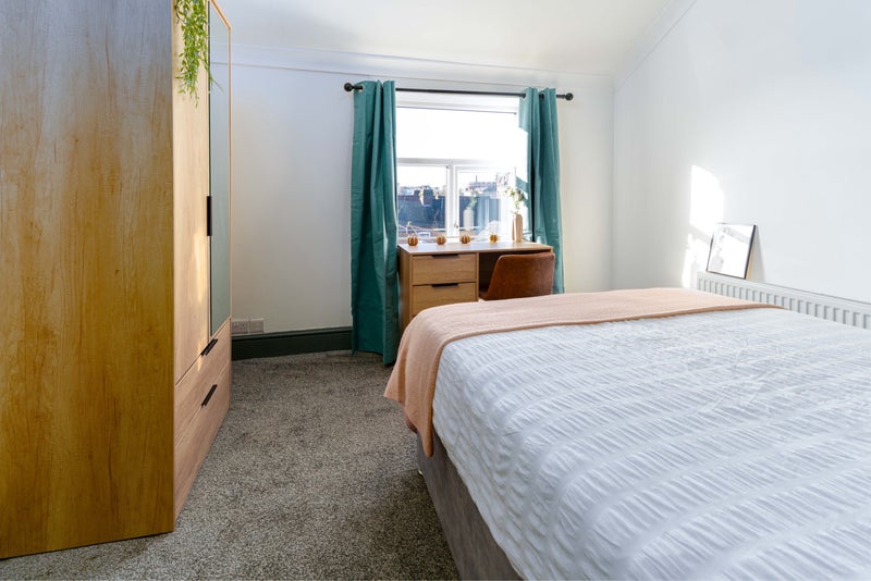 A bright and well-proportioned double room, complete with a double bed, wardrobe, desk, and bedside table. Everything is ready so you can move in and settle straight away.