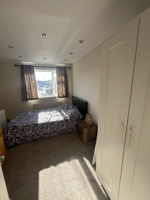 The available bedroom is spacious, comes furnished with a wardrobe, drawers, a mirror and also comes with a smaller bedside table, plus new carpet. There is plenty of room for any other furniture that you might like to add, too.