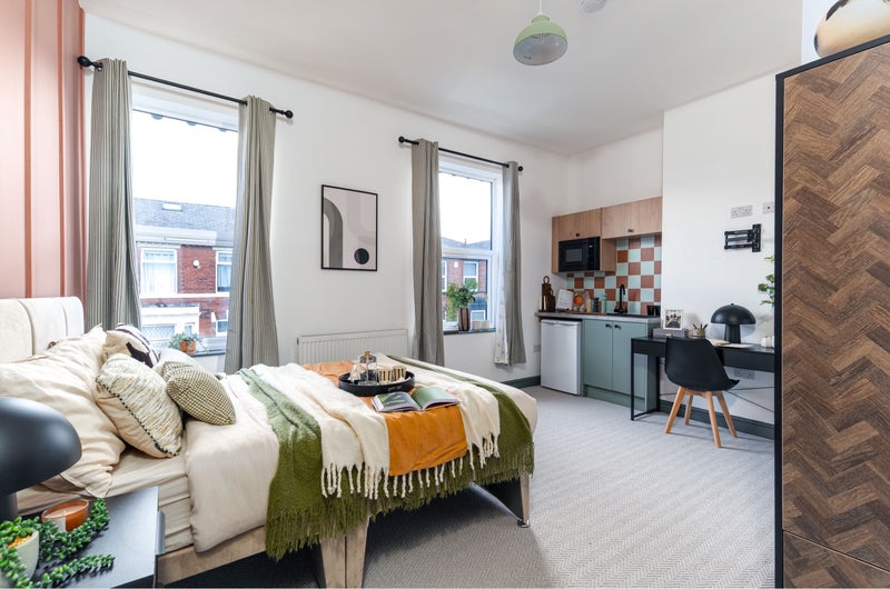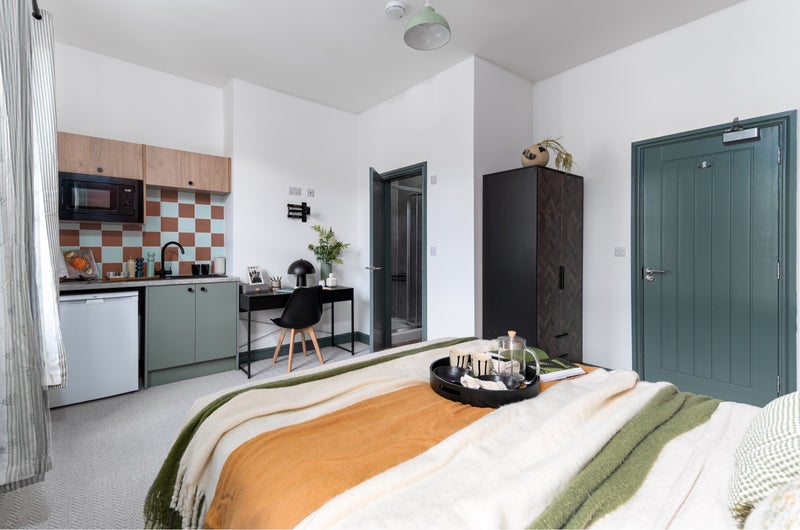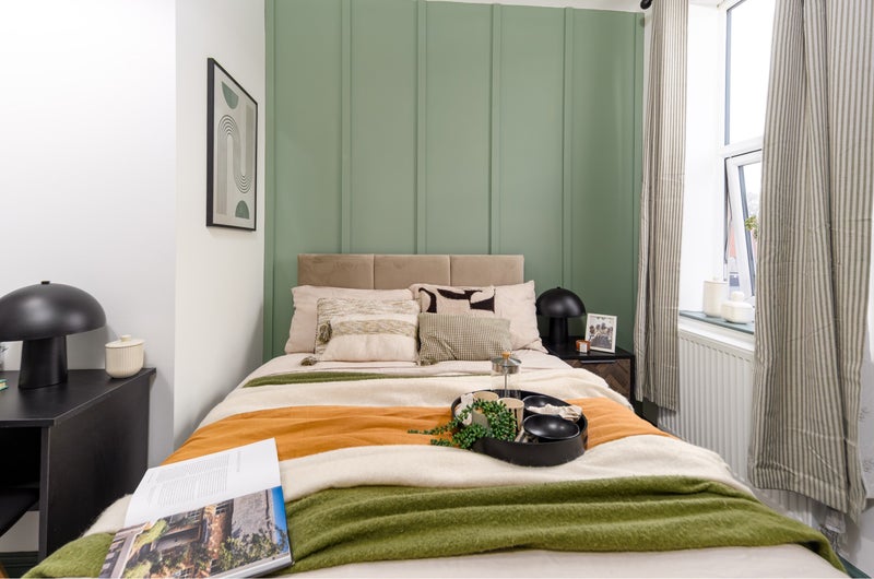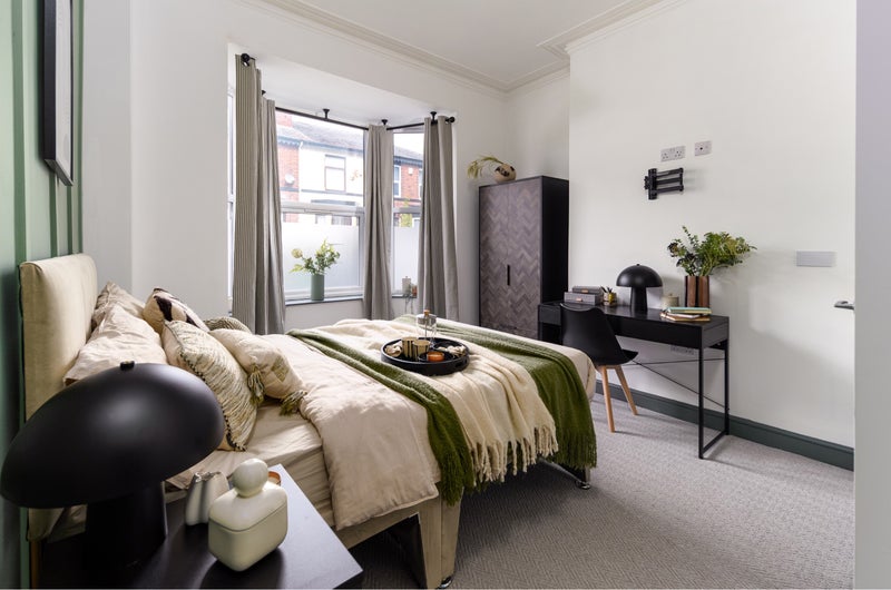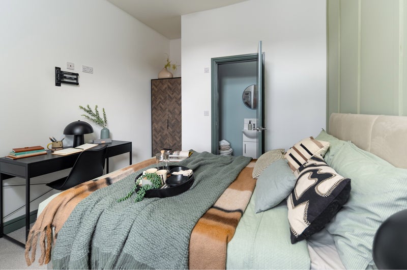 Each room is a bright, stylish space with a double bed, wardrobe, desk, and bedside table – everything you need to move in straight away.