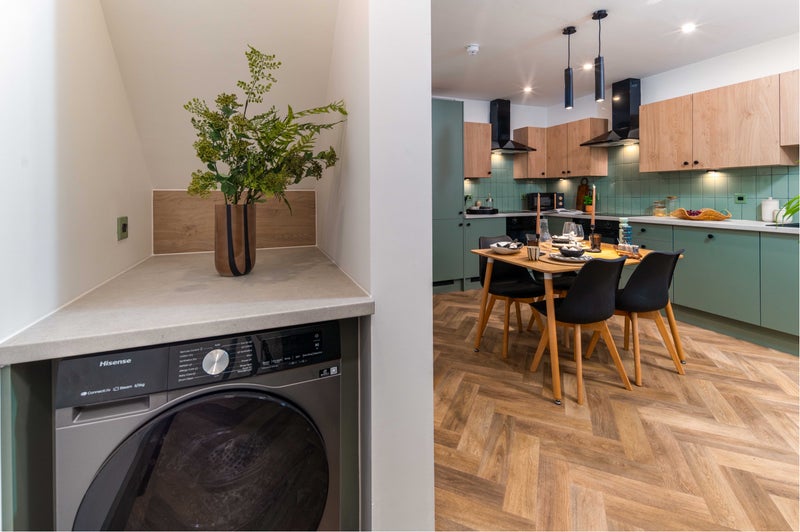 🍽 Large shared kitchen – includes washer, dryer, fridge/freezer, oven, hob, dining table and all kitchen essentials