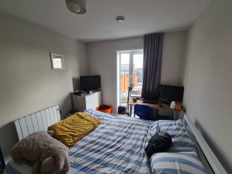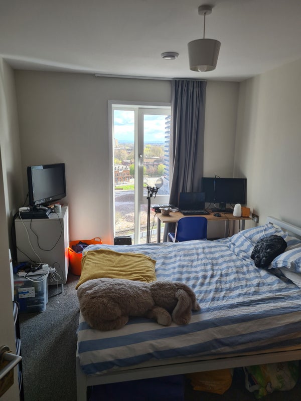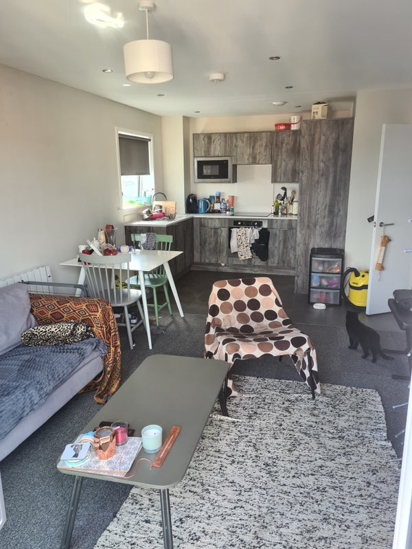 It's a 2 bed 2 bathroom flat with a balcony and view of Manchester. The flat is pet friendly and dependent on meeting your pet I am happy to live with someone who has cats or other small animals. Parking is £85 a month if you have a car. The electricity bill is £33 each at the moment it will go up however the flat is well insulated and rarely need to put the heating on, water bill is about £20 each, broadband is included and council tax is around £70 each. Good sized living space and spacious rooms. Fully furnished, kitchen fitted with microwave, oven, conduction hob, extractor fan and good amount of cupboard and refrigerator space. The bathroom for your bedroom includes a shower and you can use the bath in my bathroom aswell if you like a bath. I am quite sociable have lots of friends in Manchester but am in the flat most evening weekdays, usually relaxing, watching TV, studying, reading or gaming online. I would love to have a flatmate who is quite independent, has good boundaries and not wanting to party too much in the week/have partners over all the time but happy for you to have people over on the weekends! I am a flexible person as long as you feel able to ask I am happy to agree to most things. You should be relatively tidy in the shared space and do your bit. I would love to meet up with you and tell you more in person and make sure you are the right housemate for me.