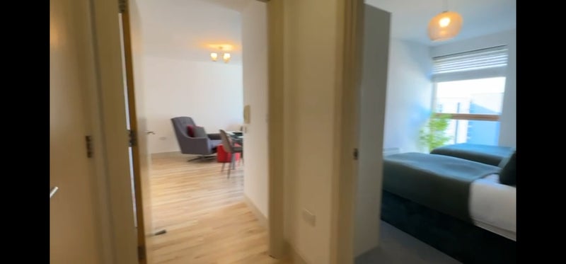 The apartment consists of two good-sized double bedrooms, a bright open-plan living and kitchen area, and a modern bathroom. Being on the fifth floor, the property benefits from plenty of natural light and open views. The building also has a lift, making access convenient.