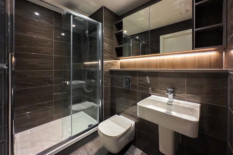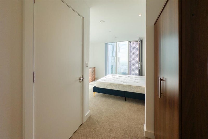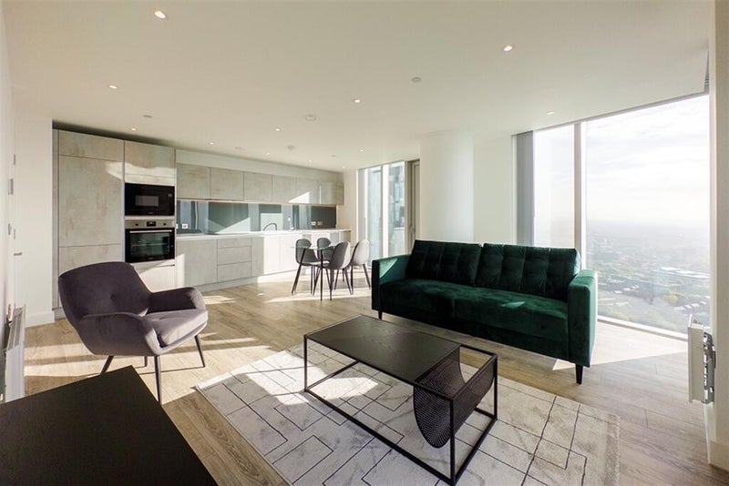 The flat is modern and spacious with floor to ceiling windows and wide views across the city. There is a large open plan living and kitchen area with integrated appliances. The building includes a concierge and resident access to a gym, sauna, steam room, co working spaces, dining area and rooftop terrace.