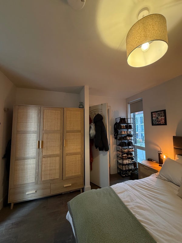 A spacious, fully furnished en-suite double room is available in a modern townhouse in Castlefield. The room is bright and airy, complete with all furniture included and a large private shower room.
