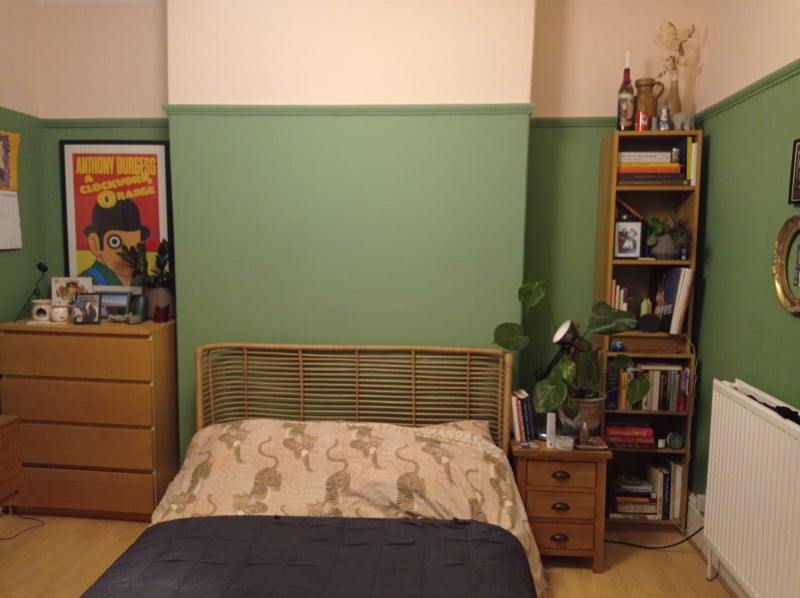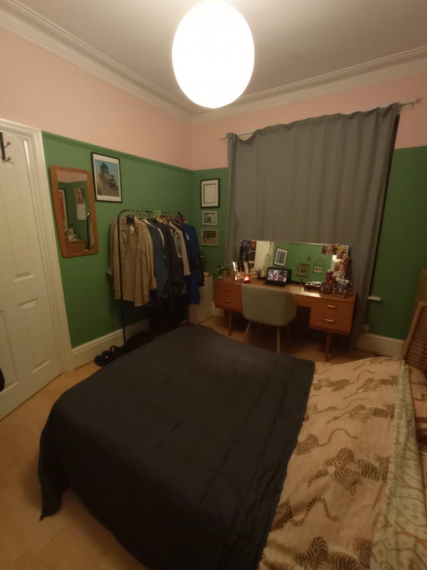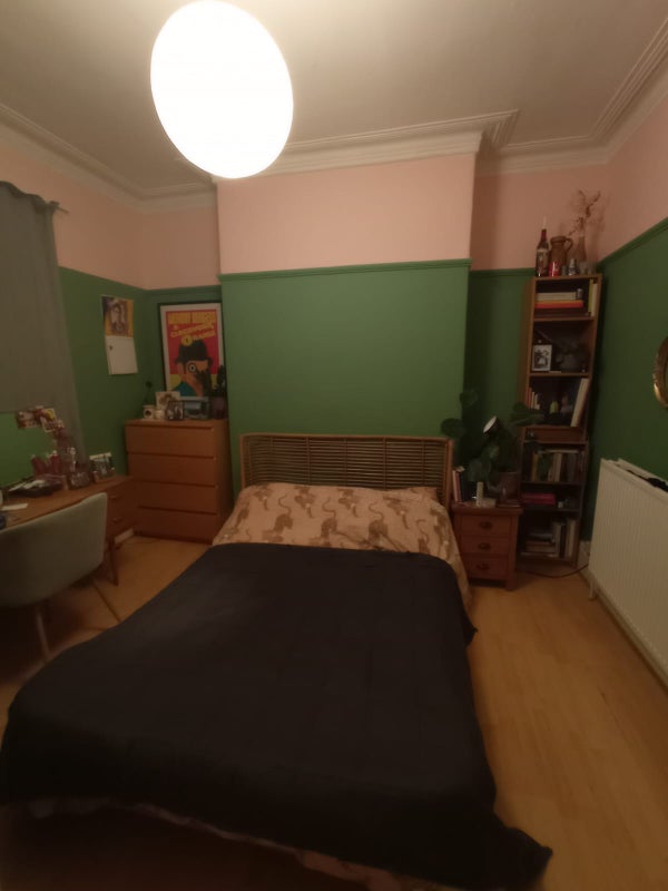 The bedroom is on the ground floor and is partly furnished, the current bed belongs to the current housemates. It can also be painted if the colour of the room isn't for you.