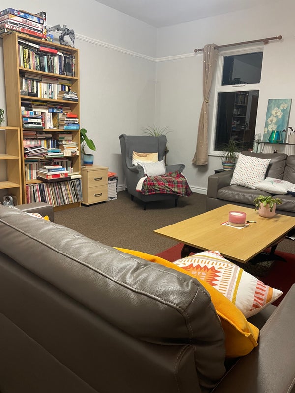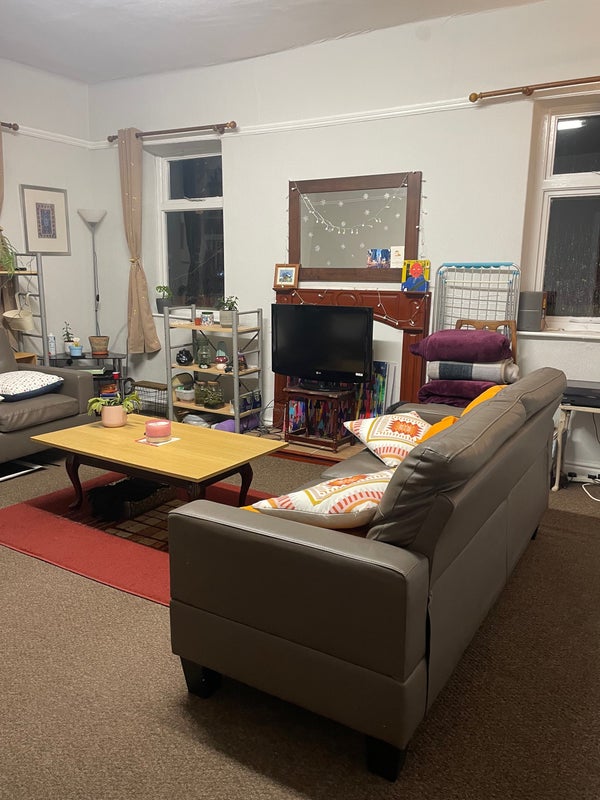 5 person house across from Duffy’s bar in the centre of Chorlton. It’s beautifully sized. The rooms are really spacious. Just my room going as I’m moving out. I’ve loved living here. The rent is 270 a month and the bills are sent to the lead Tennant of 160 pounds a month (which is to account for the estimates throughout the year).