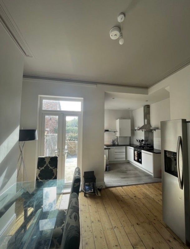 Cozy top floor room available from early June in a spacious Chorlton townhouse, well positioned next to Morrisons and the tram stop. The house is a four bed, with two toilets (including a shower), comfy shared living room, kitchen/diner, garden and basement. We don’t have a drive but there is on street parking.
