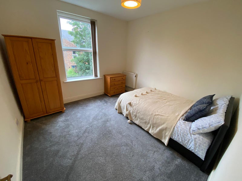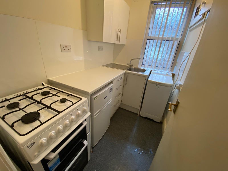 Fully refurbished studio flat redecorated throughout in the centre of Chorlton. Large bedroom with new carpet, enough room for a sofa and a TV, furnished with double bed, chest of draws and wardrobe. Kitchen has also been redecorated, new vinyl flooring along with brand new cooker and washing machine. Bathroom has a bath with shower over and quick access to small rear garden.