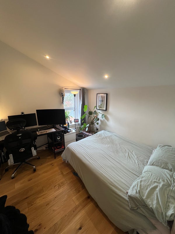 The flat is lush, it’s a modern furnished attic flat and it gets gorgeous light all day. Double room for £575 bills not included but end up being £140-£180 roughly depending on time of year.