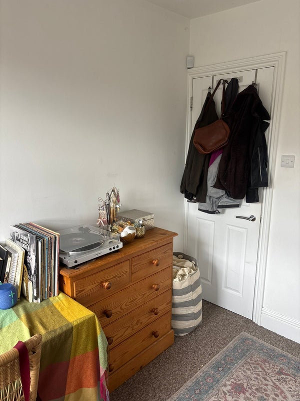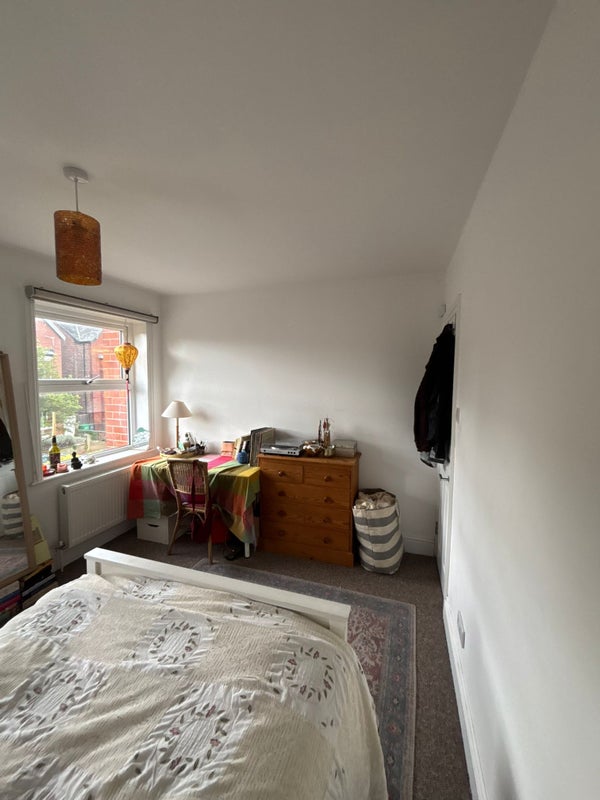 * Mostly furnished double room (bed frame and mattress, chest of drawers and bedside table come with the room. The wardrobe and desk are property of the housemate moving but she is looking to sell them to the new tenant)