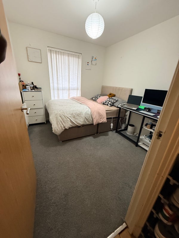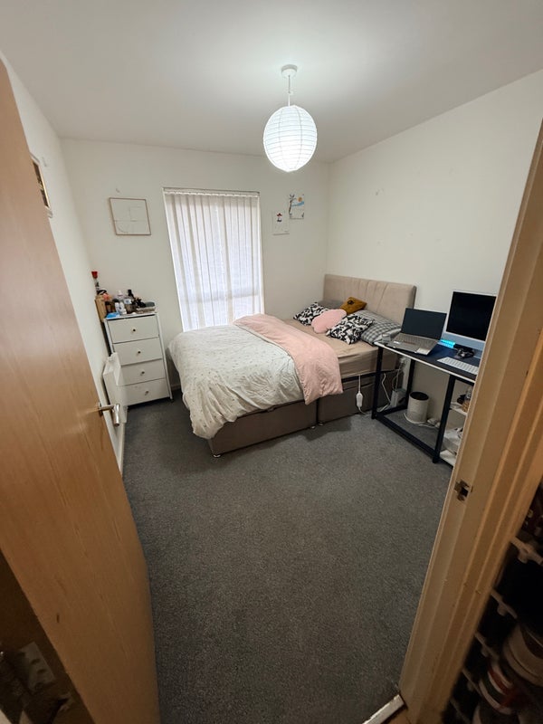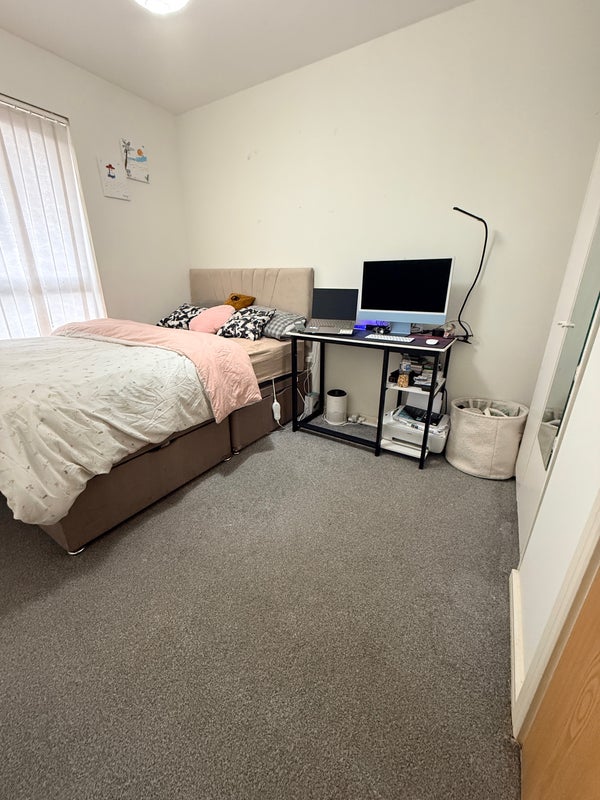 A well-furnished double bedroom is available in a comfortable 2-bedroom flat. The room comes fully furnished and offers a cozy, well-arranged living space.