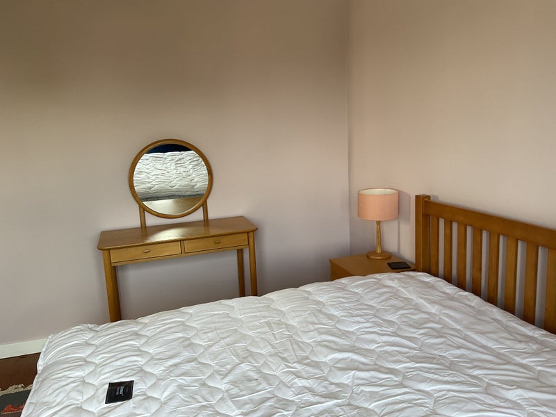 Light and airy double bedroom, recently painted, with view over south facing garden...and gardens beyond that. New John Lewis double bed and mattress, and the room is also furnished with two bedside tables, a wardrobe and a chest of drawers, plus dressing table/desk, chaise and office chair. Some furniture can be removed if you wish. I also have a mattress topper, bedding, lamps, a fan, and an electric blanket you can use.