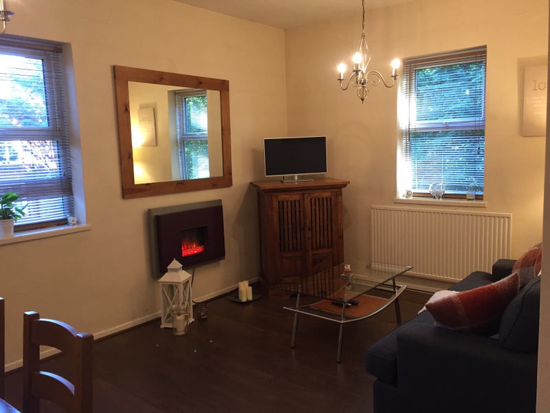 The lounge comprises of an electric fire, computer table, dining table with x4 chairs, coffee table, TV cabinet and a sofa. The lounge overlooks the garden area at the rear of the building.
