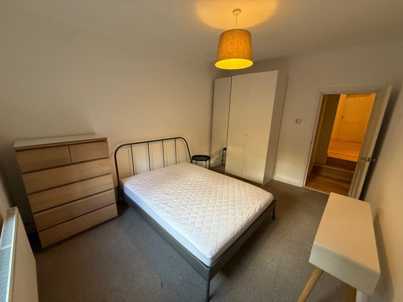 A well-proportioned double bedroom overlooking the peaceful communal garden, complete with bed, wardrobe and chest of drawers.