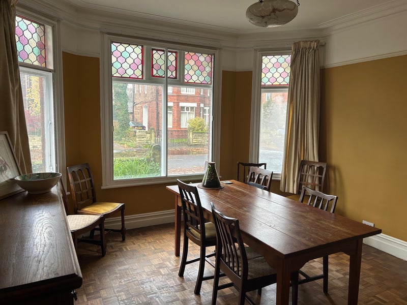 We have a fully furnished double room available in a large well-equipped Victorian house in the centre of Didsbury.