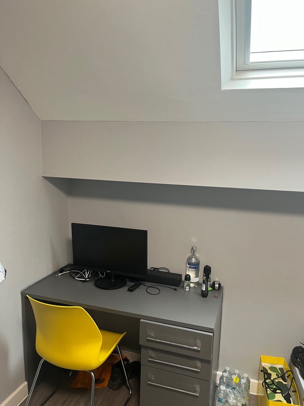 The room itself is an en suite and comes with a double bed, a desk, chair and double wardrobe
