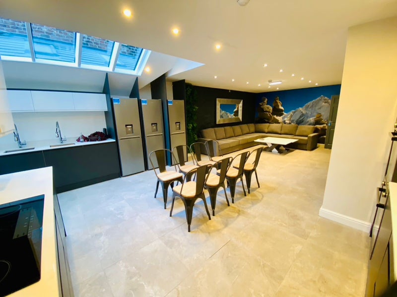 The large open plan living room features quartz worktops, dishwasher, tumble dryer, washing machine and more