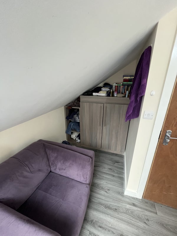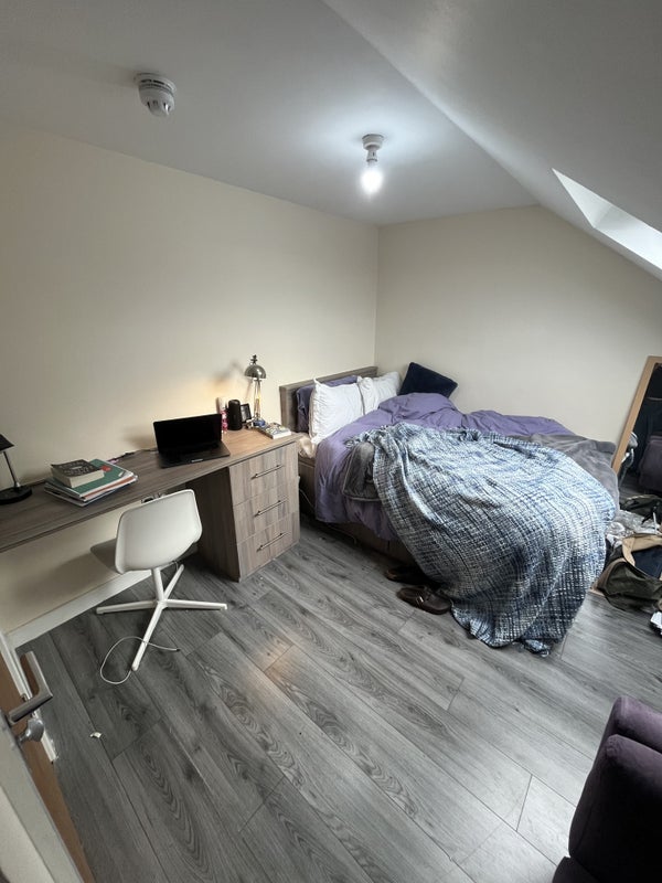 Room on top floor of eight bedroom house of students, sharing a bathroom with one other girl.