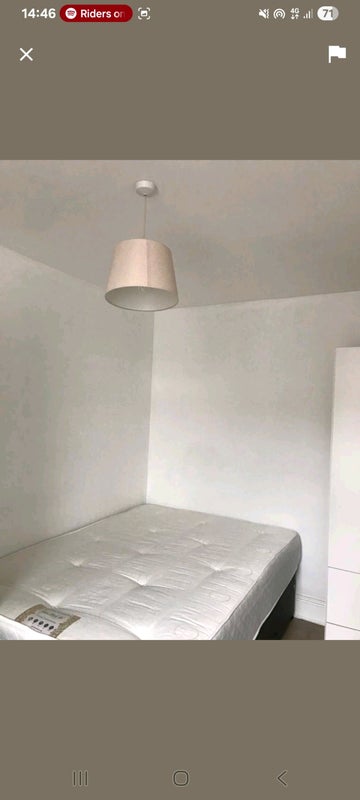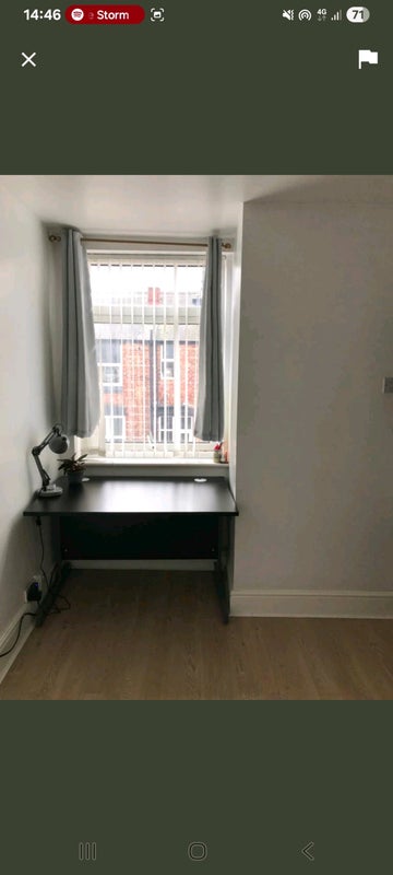 Room includes wardrobe, desk, double bed. Shared bathroom with 1 female. Shared kitchen and living room