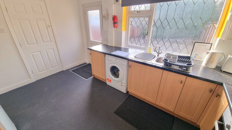 Shared kitchen – with washer, cooker, fridge-freezer, microwave, cookware and utensils