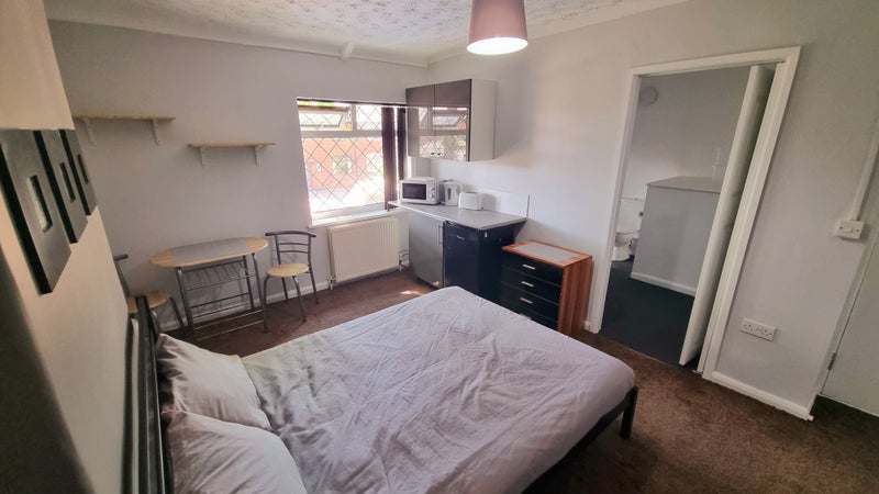Large spacious studio room with huge ensuite bathroom, all bills inclusive, in Farnworth BL4, near the hospital and town centre. Very quiet tree lined avenue with off road parking.