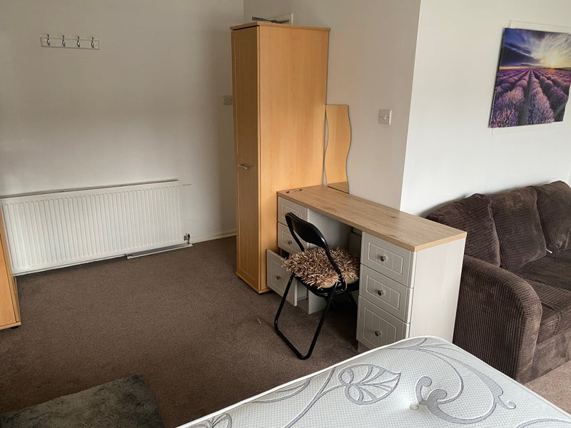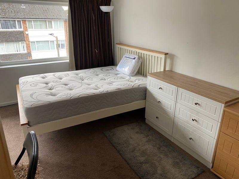 - Double bed, brand new mattress, triple wardrobe, desk & drawers, bed side drawers