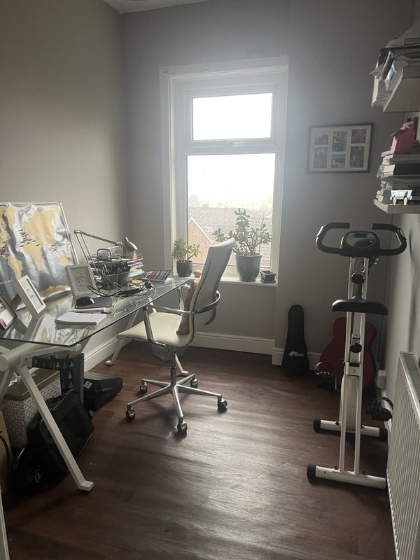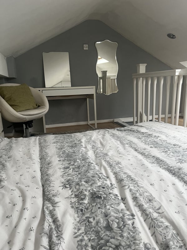 Large double loft conversion room to rent, fitted wardrobes, desk, chair, TV stand, 2x large velux widows with great views, use of separate office room, Shared bathroom and large shower, large kitchen/dining area.