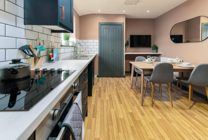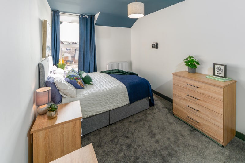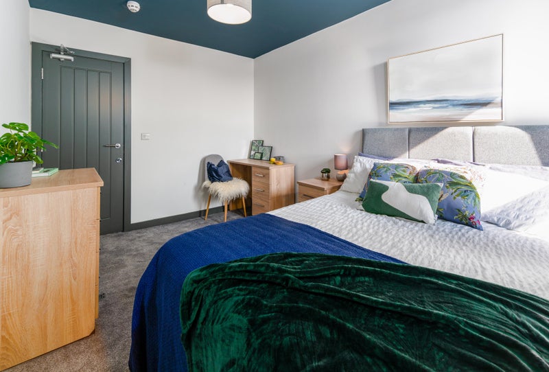 A bright, stylish space with a double bed, wardrobe, desk, and bedside table - everything you need to move straight in.