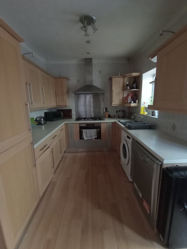 Room comes fully furnished with double bed, wardrobe, chest of drawers. Kitchen with all appliances washing machine and a rear garden with garden seating set.