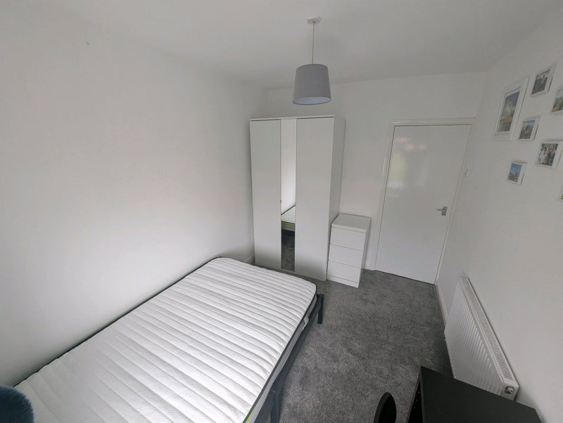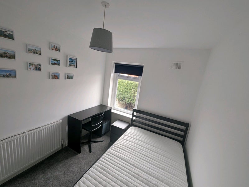 The room is recently furnished with brand new: small double bed, wardrobe, chest of drawers, bedside table, desk, and chair. Let me know if there are any other essentials you need!