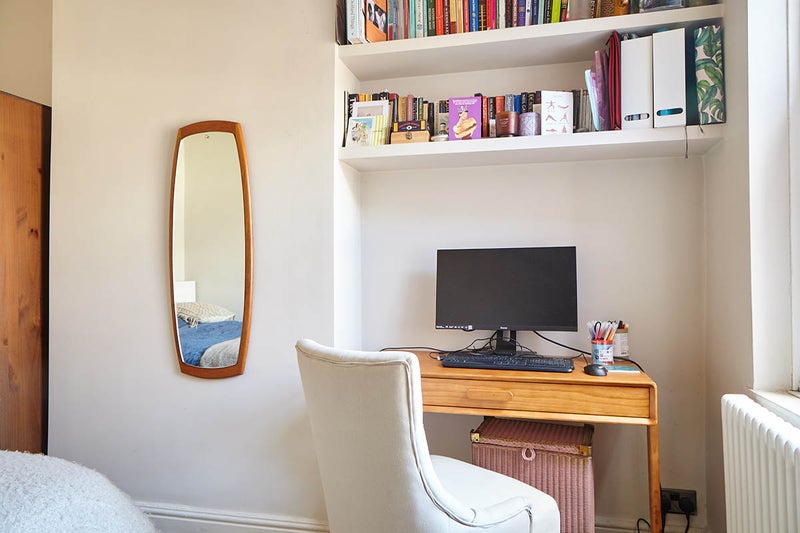 Sunny and quiet double bedroom in Levenshulme in a 2 bed terrace. Room has lockable sash window, column radiator and ikea ottoman bed for extra storage. Room also comes with fitted book shelves above a space saving solid wood desk and padded swivel chair, handy if you work from home. There's also a Habitat wooden wardrobe & drawers with an ikea remote controlled light for dark mornings when you need to see your fashion clearly, and an additional set of drawers at the foot of the bed. The teak mirror and rattan side table in the bedroom pics belong to the current lodger, but there's a full length Ikea mirror available, plus a smaller space saving side table for the room. You are welcome to add your own if preferred. The house is sharing with myself, an outgoing and sociable 48 year old food & portrait photographer. I like going out and seeing friends on the weekends and going to the gym some evenings during the week, but I'm not a party animal. The house is more of a chilled sanctuary than a bustling party vibe. The living and dining room are open plan, with a small kitchen just off it, opening up to a lovely tiled patio that’s a sun trap in the afternoons and evenings during the summer. The kitchen has a fridge freezer, gas hob with electric fan oven, plus a Ninja air fryer which is handy for speedy dinners. There's also worktop space for an extra blender/food processor if you have one of your own. There’s a lovely gated community alley with plants out back, so if you're a keen gardener, you're welcome to get involved and grow a few plant babies of your own! The house is less than a minute from the 192 bus stop where the bus takes around 25 mins to get to Piccadilly, and the house is a 10 minute walk to the train station, where you can get to the city centre in around 7 minutes. Also a short walk away are some great bars and restaurants (Nordie, Talleyrand, Isca, Cibus, Station South), plus the Antiques Village, which is great for a mooch on weekends. I like to sew as a hobby, so if you can tolerate my sewing machine occasionally on the dining table, we’ll get along just fine. Rent includes all bills/unlimited broadband and some streamers on the tv. Currently there's Netflix, Mubi & Disney plus, but this changes depending on deals/cost and programmes. Please be aware that this is a space perfect for two people not 3, so if you have a partner, they would only be able to stay over one night a week max just to keep the bathroom and communal spaces reasonably free. Council tax is band A. Female or gay male preferred.