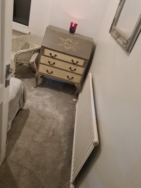 1 room available small room has double divan bed bedside table wardrobe and dressing table