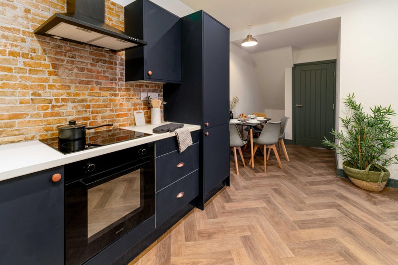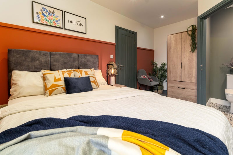 A bright, stylish space with a double bed, wardrobe, desk, and bedside table - everything you need to move straight in.