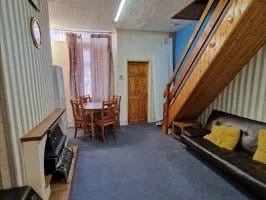 The property briefly comprises of an entrance hall with two good size reception rooms and a kitchen on the ground floor whereas a double bedroom, a single bedroom and a family bathroom are on the first floor. Kitchen includes wall & base units with worktop over incorporating a bowl sink with mixer taps and an electric cooker. Bathroom fittings including WC, wash basin and a bathtub fitted with a shower mixer. Externally, there is a decent size rear yard. Property comes with Wardrobes, Gas cooker, Fridge Freezer and washing machine.