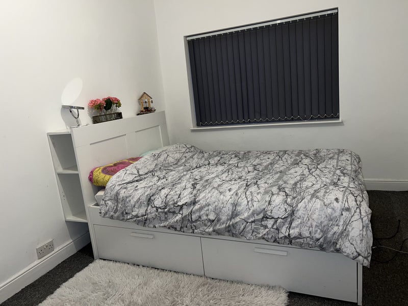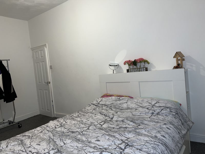 Large bright double room with a double bed and wardrobe. Shared massive bathroom and Living room, kitchen with one person. Some of the stuff in the Room had been removed, the flowers on the headboard side. Locations 3 minutes walk from Morrisons, Lidl and TheGym. Post office and GP and close to takeaway shops and restaurants. 3 mins walk to Bus Stop direct to Manchester Piccadilly 15mins duration. 10mins walk to Edge Lane tram stop to Manchester Piccadilly. These pictures are not the best quality but the place it’s really suitable for students and individuals. ROOM WILL BE AVAILABLE FROM 5th OF NOVEMBER