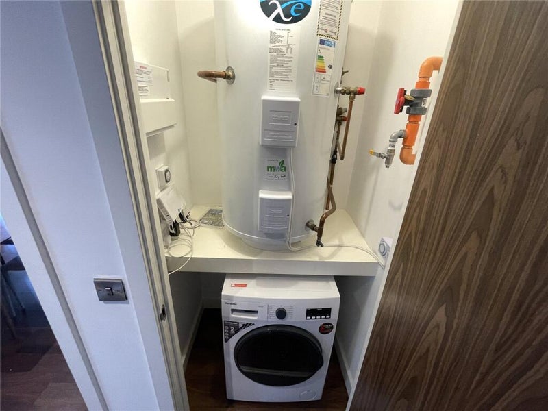 There is a washer/dryer and a beautiful balcony too.