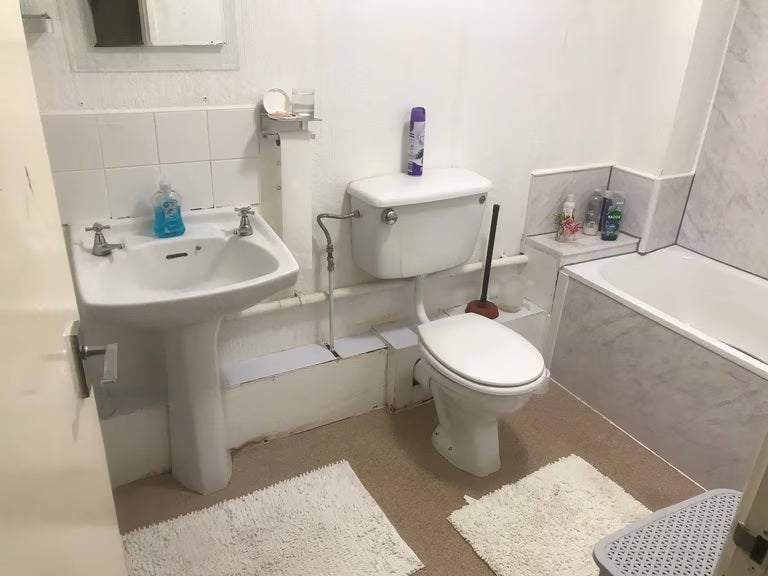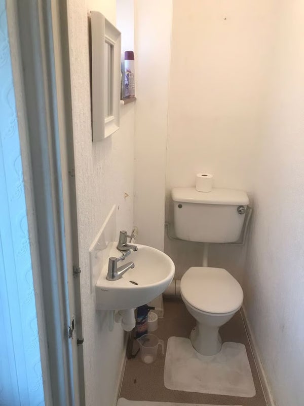 Two bathrooms: one toilet downstairs and a shower room with toilet upstairs