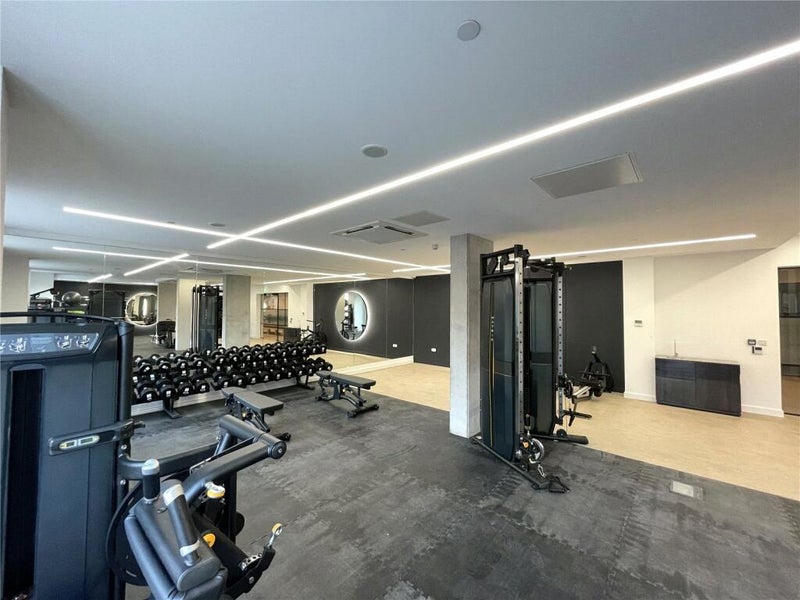 The building has a large lobby area, fully kitted gym, cinema room, yoga room, and rooftop terrace.