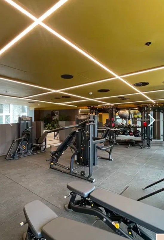 The building has a gym and co-working space, and the apartment is bright, modern, and spacious.