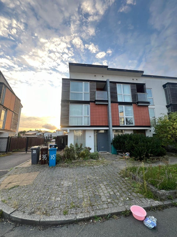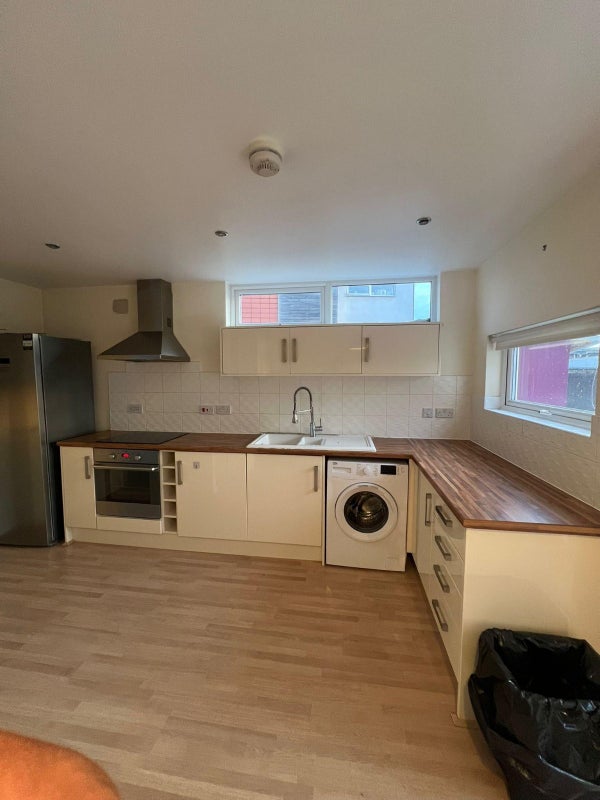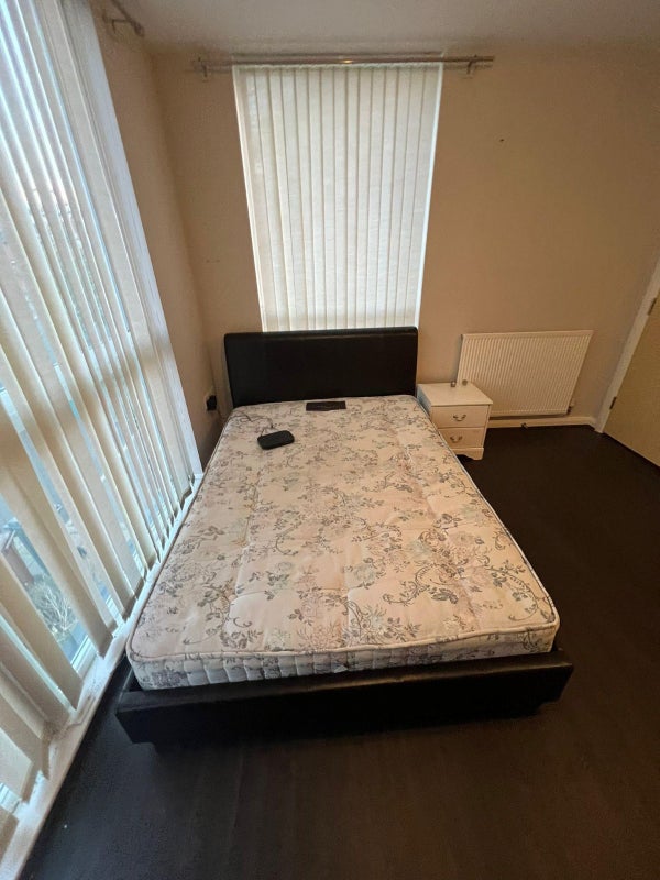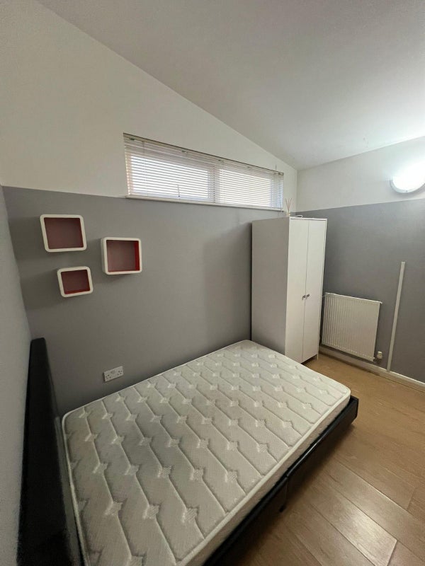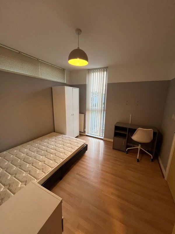 The house offers fully furnished bedrooms (bed, wardrobe, desk and chair), a shared living/dining area, a fully equipped kitchen (fridge-freezer, cooker, microwave, washing machine) and clean shared bathrooms.
