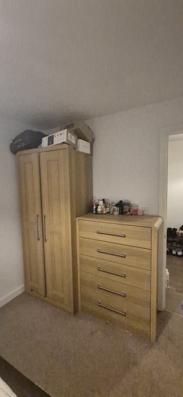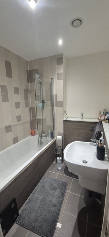 You’ll have your own double bedroom and a private bathroom (just across the hall) with a bath and shower. The room comes fully furnished with plenty of storage, which is quite rare in newer flats. Also a washer dryer and big bright living space with TV.