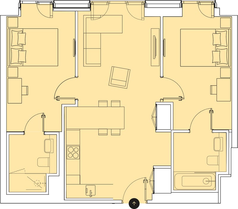 When it comes to your apartment, theres 15 floorplans to choose from! Will you go furnished or unfurnished? This 2 bedroom apartment is stunning. Instantly you're greeted with daylight, thanks to the floor-to-ceiling windows with fabulous views of the city. In the kitchen, youll have full-sized, high-spec Zanussi appliances. The breakfast bar separates the cooking from the relaxing, & the living space comfortably fits everything you need to relax. Talking tech, the home is SkyQ ready & theres handy USB ports throughout. The stylish bathrooms have mirrored cabinets mounted to the wall, heated towel rail & best of all a rain shower!