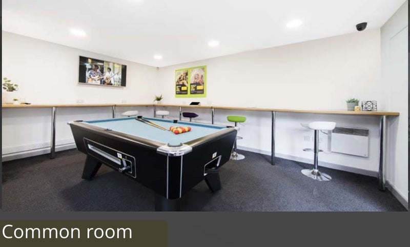 Common room with pool table and PS4