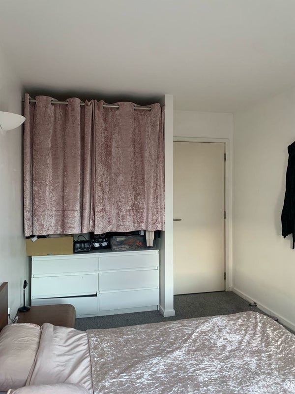 The room for rent is a good-sized double bedroom with built-in wardrobe and chest of drawers, and you will have your own bathroom with a contemporary three-piece bathroom suite.