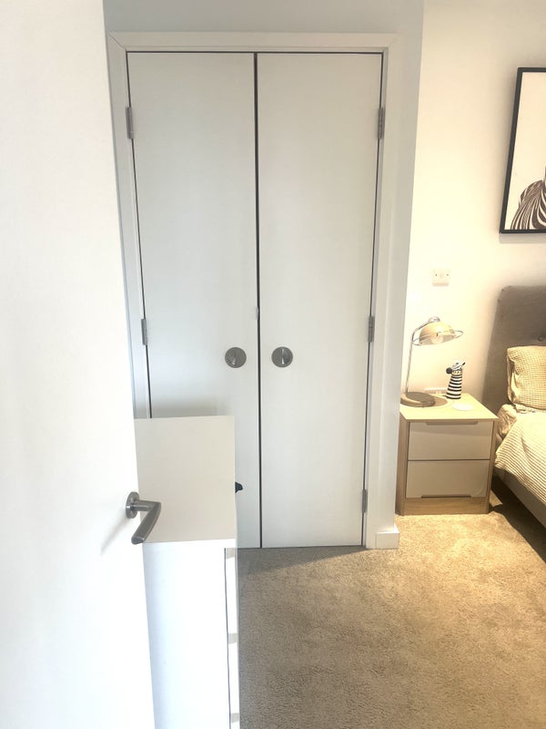 I’m looking for an easy going housemate who’s tidy and respectful and obviously LOVES DOGS Ideally someone with different working hours that aren’t identical to my own again to give us both space. The room is a double room there’s a bed, built in wardrobe Bedside table and some white large chest of draws.