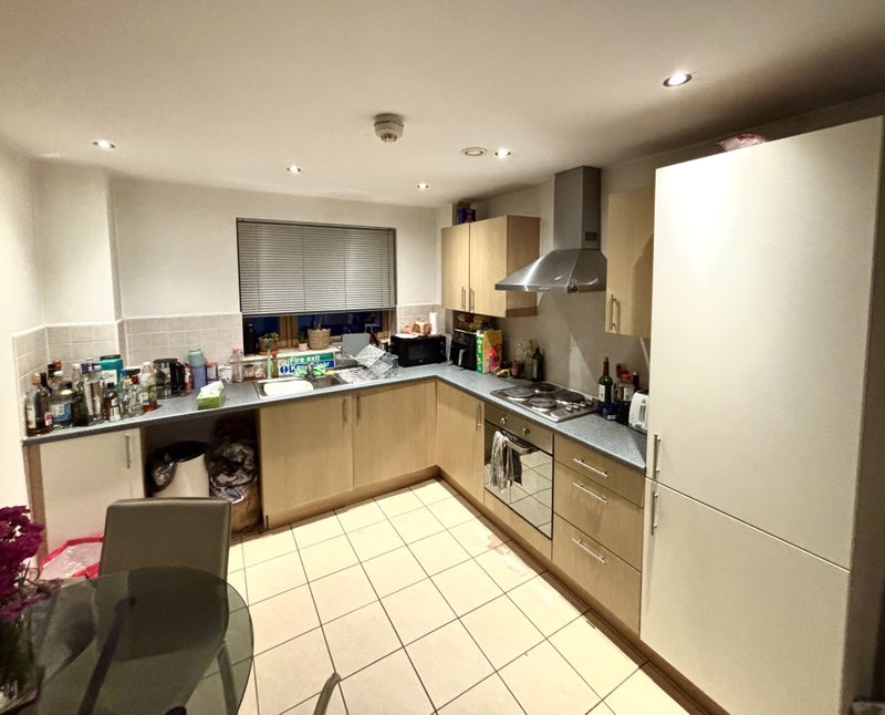 The 2 bed 2 bath flat is located in the Northern Quarter area of Manchester and has a large open plan living room/kitchen area . The room available is a fully furnished large double room with its own large bathroom so you wont need to share. The apartment also comes with a parking space in an underground garage.